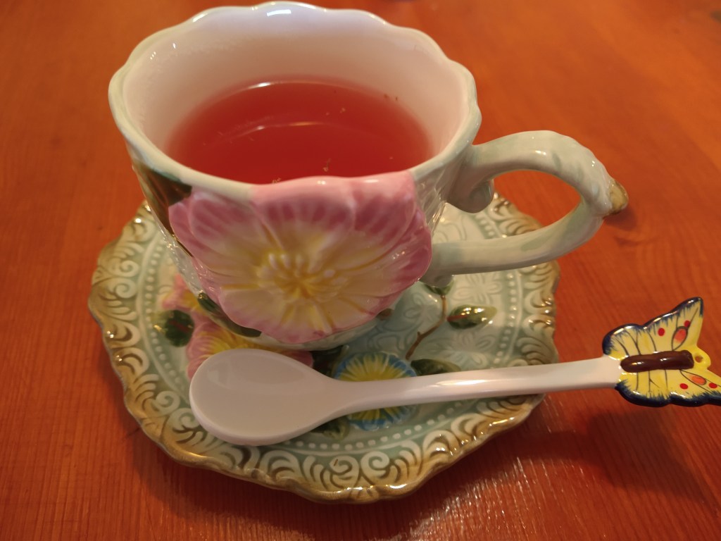 As if that wasn’t enough, my sister gave me this gorgeous tea cup for Christmas. Most of our nice things have been in storage for years, so it’s special to have this to drink from.