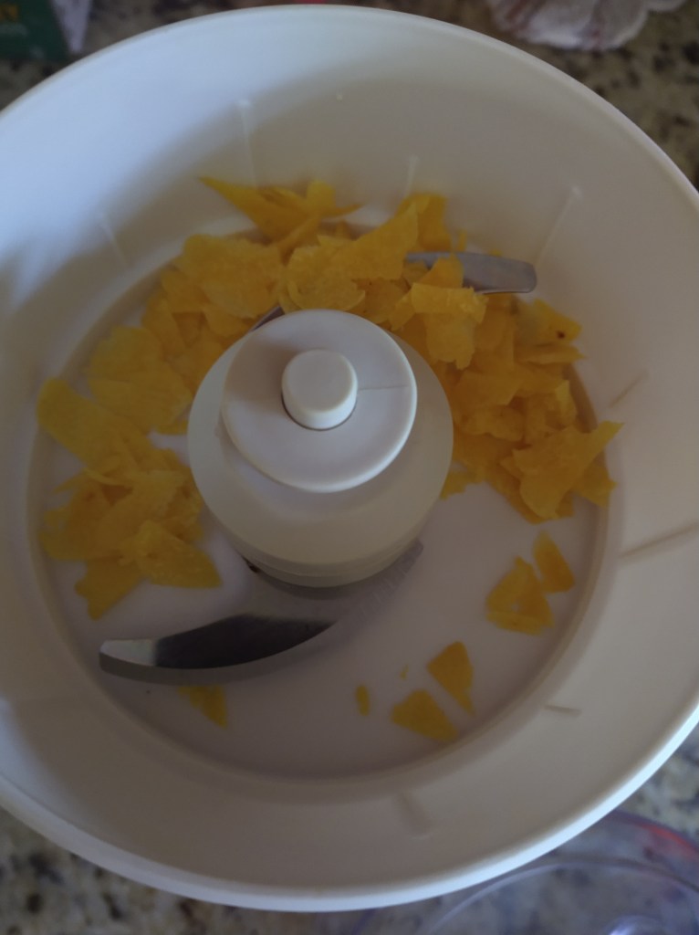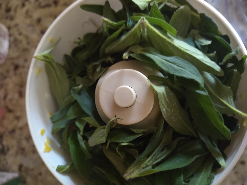 4. Run the zest and mint leaves through a food processor to finely chop them.