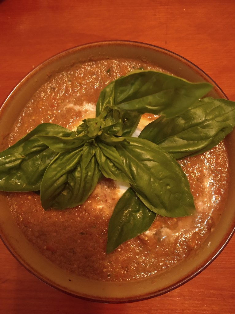 Because gazpacho was so cheap when I lived in Spain, I never really bothered making it. I had to look up a recipe, and I don’t want to claim originality for this because it’s not fair to the person who posted it. So here’s the link to the recipe I used: https://www.food.com/recipe/real-spanish-gazpacho-from-spain-242054