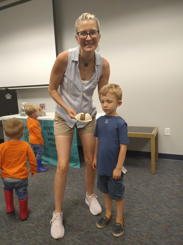 I asked him to put his shirt on properly, meaning right side out, and he said, “No, I want to wear it like this. That’s my choice.” (Also, please ignore the fact that it looks like I’m wearing orthopedic shoes. My feet swell in the heat. And that’s a turtle shell in my hands if you’re wondering.)