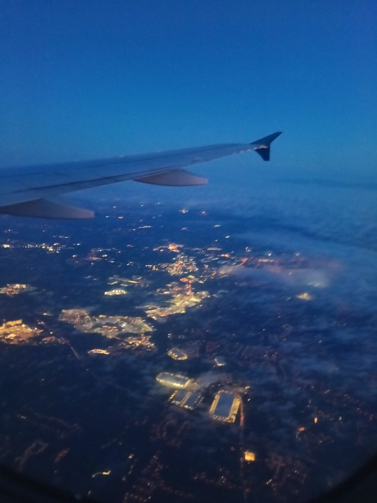 Takeoff was spectacular; seeing a city lit up from an airplane just as dawn is breaking is one of my top 10 favorite things. This was also the first time I’d flown since before I got pregnant.